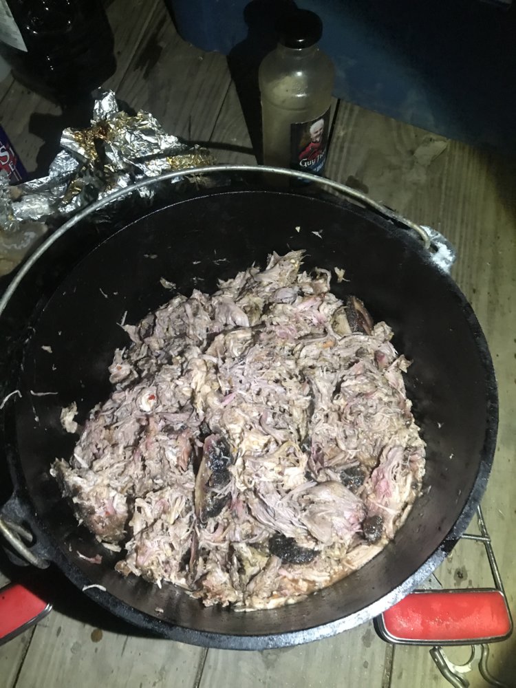 Headed out tomorrow to camp. Been working this butt over since about 6 tonight. Snapped this photo before wrapping in foil and choking down the BGE. I’ll let it go all night and stick in a cooler tomorrow am. Will heat up in a Dutch oven over some coals at camp tomorrow. :cool: