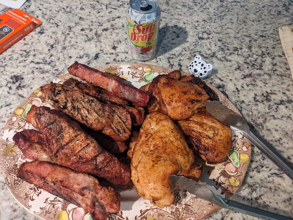 Smoked sweet potatoes and smoked beets was round #1. Around #2 was chicken thighs, breasts and country style ribs.