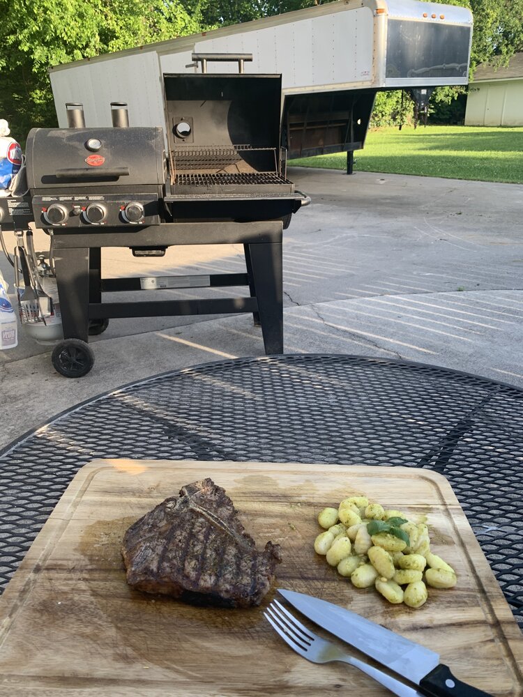 Mowed, weed eated, washed the bikes, pulled weeds, cut trees, trimmed limbs and cleaned garage. Perfect day to babysit the Big Green Egg.