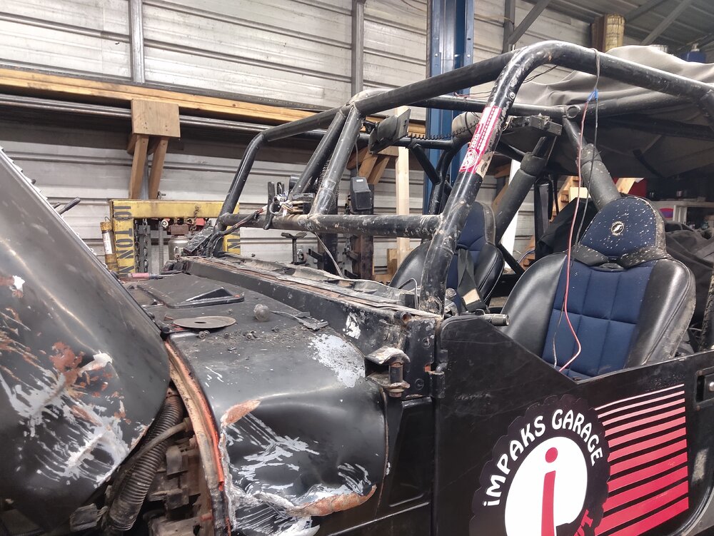 List of fixes needed: rock rails, cage, winch, rear fender flares, rear axle leak, roof and probably more I am forgetting