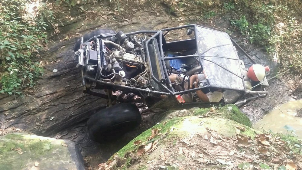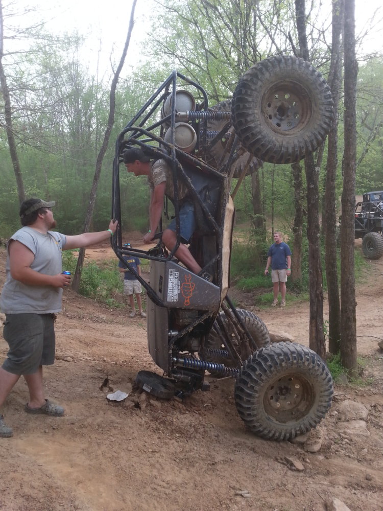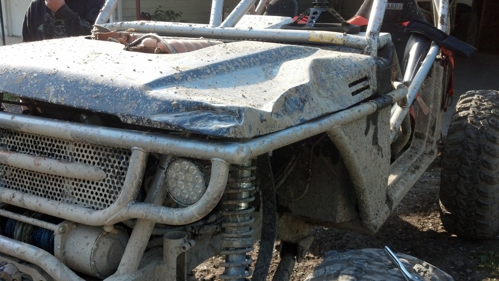 Hey that's my arm on the cage!! That was the most comfortable flop ever, thanks Marsfab!! Yeah I had a really good laugh at Aaron after that. It mashed the hood up pretty bad and broke the latches and we bungied Thom, so at one point we are hitting this spot pretty hard and as we drop down the hood kinda floated up. I look over and Aarons eyes were huge and he looked kinda sick for a second!! He said I thought the motor was falling out or something....lol we took the hood off after that and rode bouncer status. Good times!!