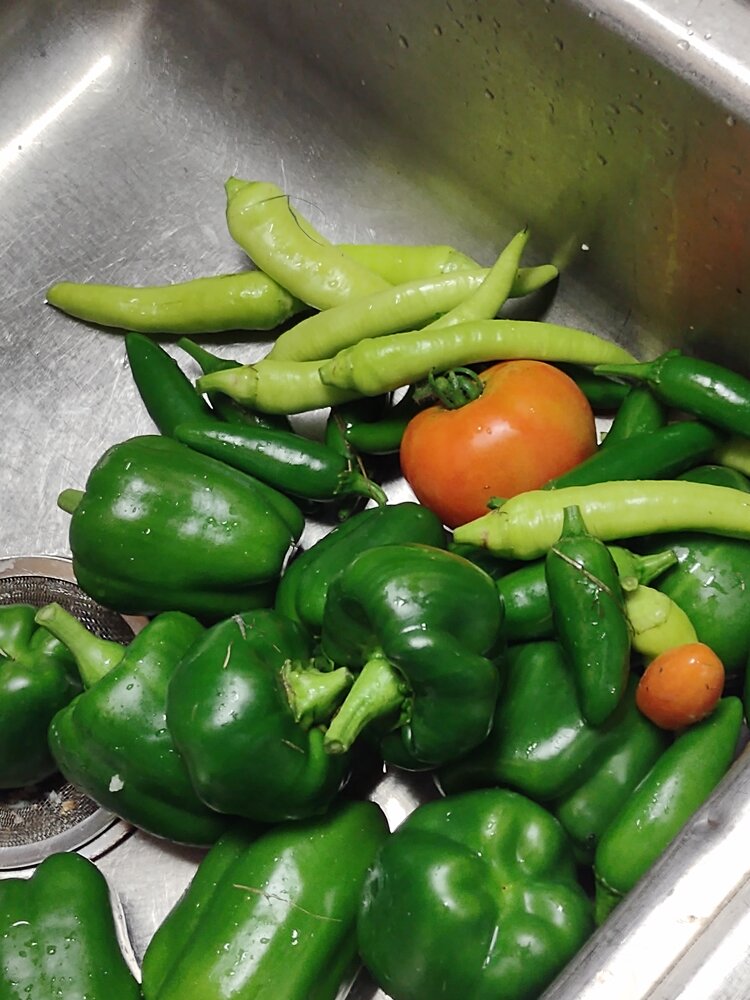 Steady flow of Jalapenos and Banana peppers too. Maters made a come back. Got 30 lbs or so. They are just getting going good.