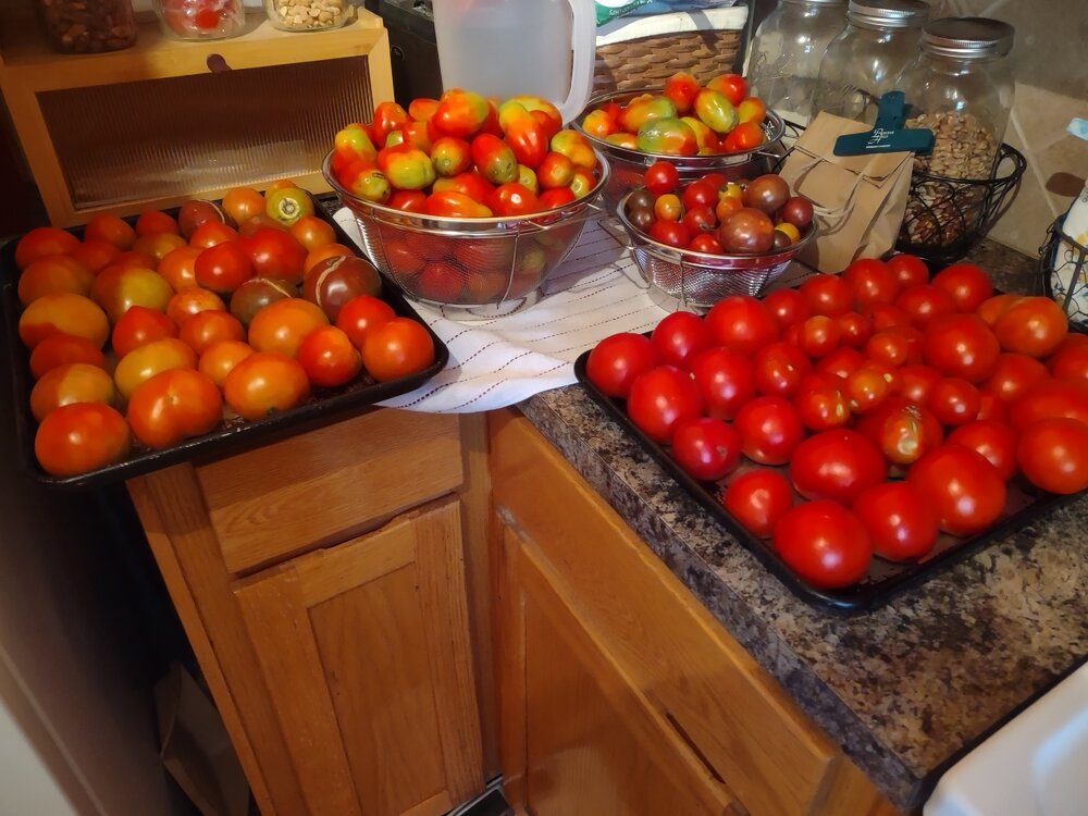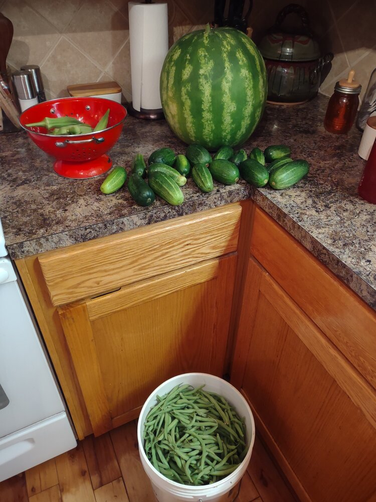Corn is in, still need to dig potatoes. Beans still putting out slowly. Peppers and tomatoes are rockin’. Squash bugs finally won and I pulled up squash, zuc and cukes 😡