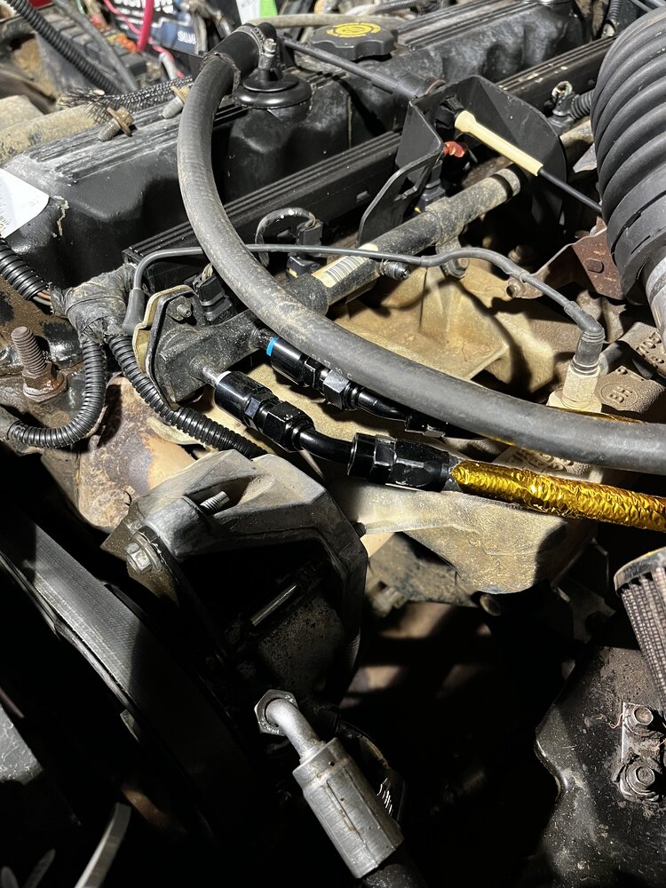 Ripped out all the lines last night and got to work making new lines with -6an line and Russell fittings. Need some -10 to tie into the cell and a couple small fittings to button things back up. The lines in the engine bay will get wrapped to lessen the chance of heat soak.