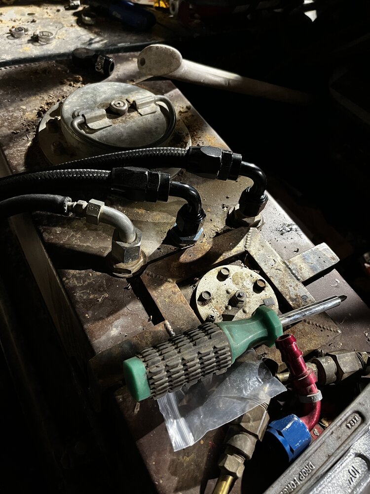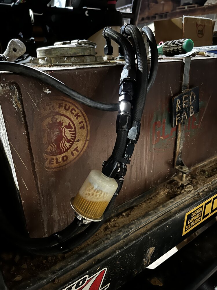 Of course during a night run and on Daniel it started getting slow to start and cutting out around 3500rpm. Having been through this before with it I knew the pre filter was clogging. Limped it back to camp, brought it home and started ordering fuel lines and fittings to replace everything from the cell to the rail.