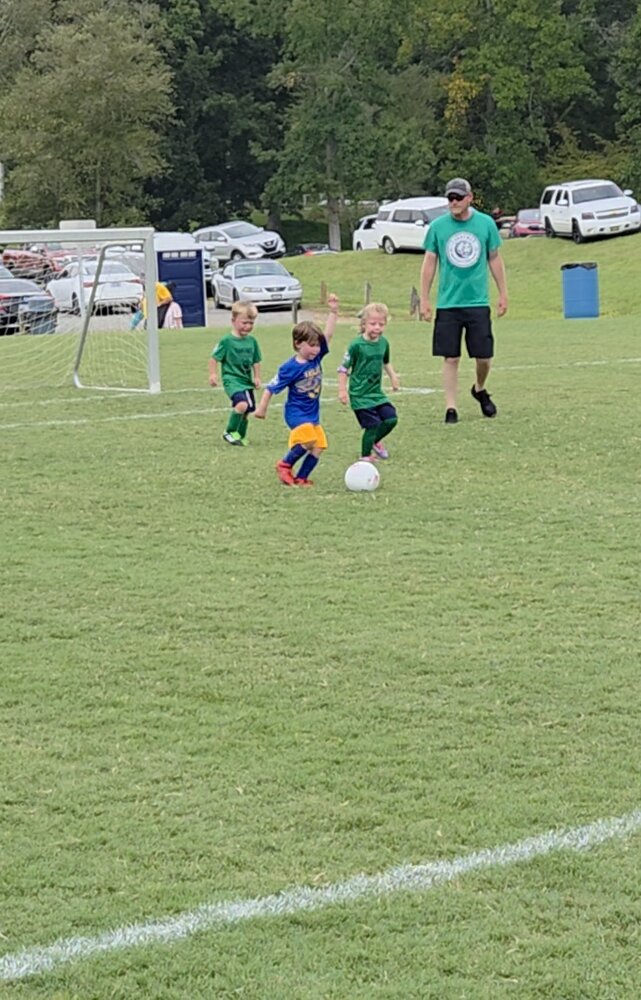pre season soccer tournament this weekend. Ollie's first game ever, and munchkins first games as goalie.