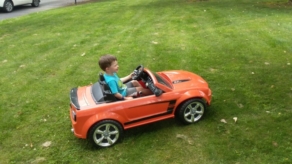 My little boy has attempted to drive the Mustang a couple of times. Most attempts included a stabby throttle and multiple looks towards me for confirmation. Never did he drive it by himself... until today!!