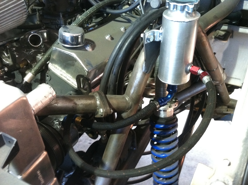 Got the steering resi mounted and plumbed, crossmember built and the lower links burned in today!