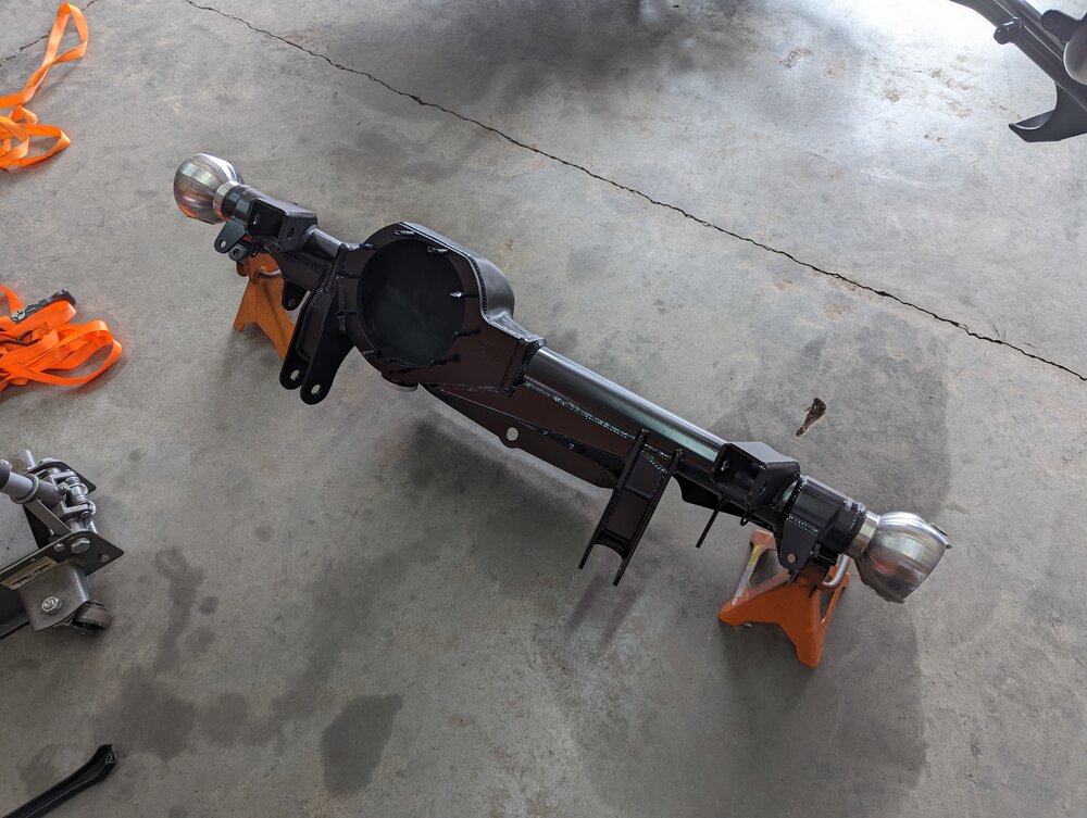 Rear axle complete minus the calipers, caliper brackets, rotors and spacers was 172 pounds.