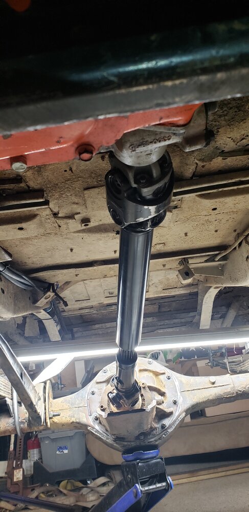 Best I have until later, but... you can see how the control arm attaches to the axle and the lack of anything hung below the housing. The front is a combo of johnny-joint & shackle (like everything else). @R Q ran it in his Jeepster prior 4-linking and the 9" (was in a Cherocar) was setup for the same CA/traction bar, so was bolt-inI'd like to see pictures of this.