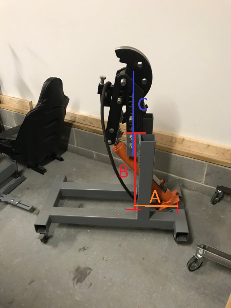 As far as A & B. Where should the hydro cylinder mount in relation to the two bolts? This is the part I don't want to guess at.
