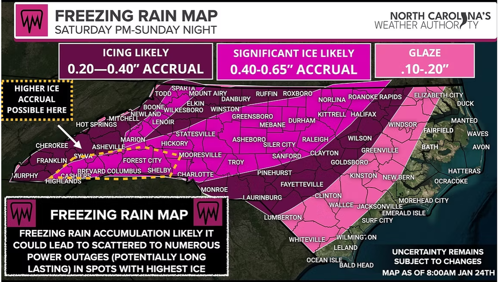 Kershaw county has been updated to a winter storm warning with .5" of ice likely from Saturday afternoon to Monday morning. Good times ahead.....