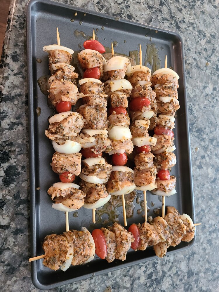 The talpia was nasty, i took 2 bites and put in the compost ...... I got some real fish today....fresh Sockeye on the the pitboss. Put some rub and and glaze w bbq sauce and whiskey on them for an hour in the fridge. No pics of the plate i was too busy eating it w corn on the cob and a baked tater..