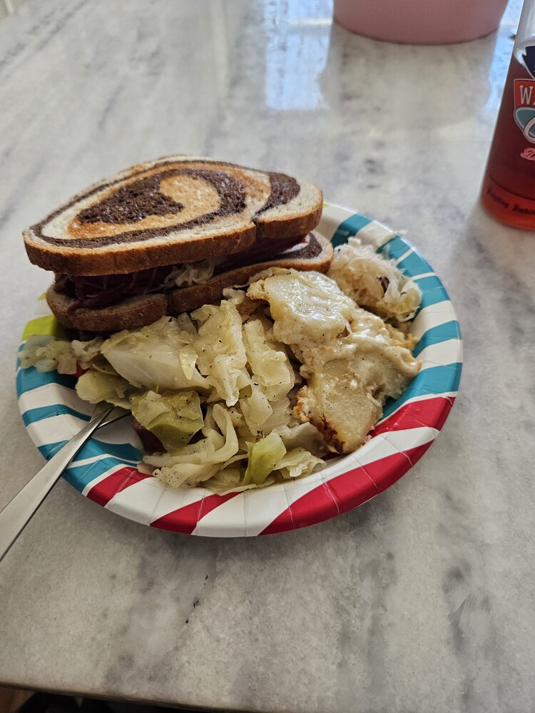 Mother in law fixed us some reubens with cabbage and scalloped potatoes Monday. Quite tasty.