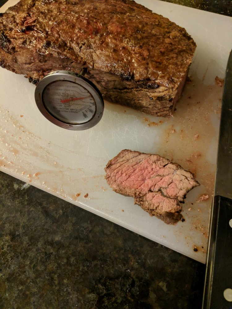 Good Lord, that is a feast! Props to you sir!Soy, wercestershire, garlic, ginger and brown sugar marinade London broil.
