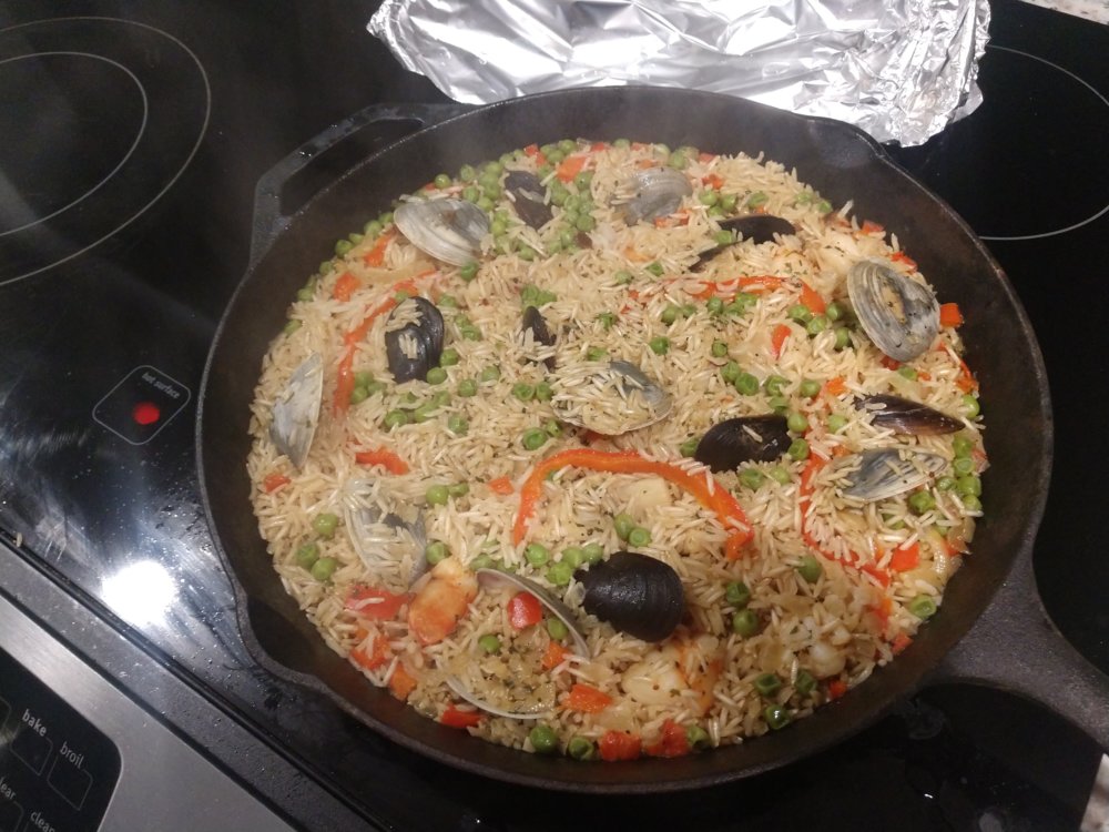 Made my first seafood paella today for supper. Shrimp, scallops, mussels and clams. Quinoa rice with peas, peppers and onions.