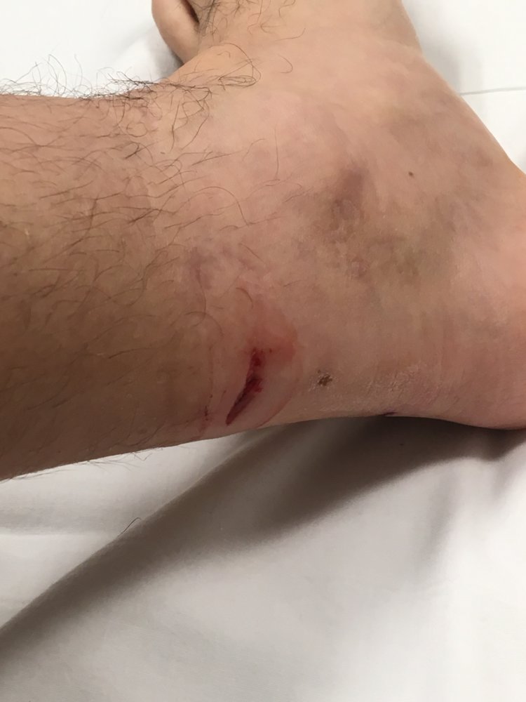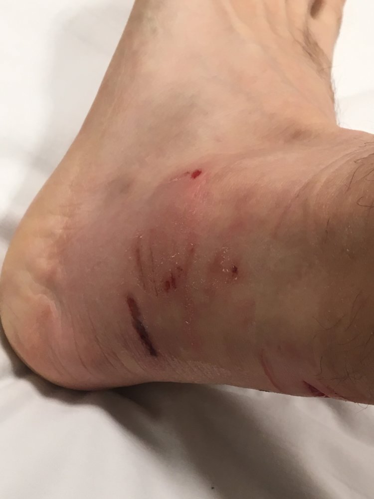 Lost a few ounces by the help of a dog while pedaling around today. Had to get that sewn back up :(