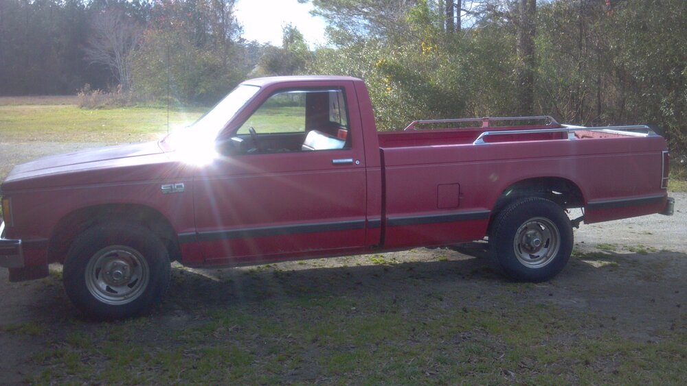 Going to order a new fuel pump assembly, 20 gallon tank, shocks, brakes, brake hoses, fix the busted brake line to the rear, all the front end wear parts, I have a new water pump for it in the shop, thermostat, belts, hoses, fuel filter, plugs, wires, dist cap, rotor button, change the oil, drain/fill transmission/rear end, and rob some parts off my dad's old S10 that's sitting behind the shop at his house. Definitely the inner fender liners, the toolbox, maybe the mirrors, definitely the grille (mine is an 85, the other is a 93), and I'm going to see if the radiators will swap over. I may even keep the 93's rear axle. I haven't quite decided yet. I added up ALL of the parts I could possibly think of and I'll be less than 1000 bucks in it. Then I'll rob the rims from the other truck and probably put mine in their place so I can drag the 93 on a trailer to scrap it at some point. I'm thinking I'll get a set of 225/70-14 (stock is 205/75-14) Mastercraft Avenger GTs with the raised white letters to go on the rims from the 93. They're steel, but painted black with 5 "house" shaped holes that are outlined in a 3/8 wide gray stripe, black center caps with the gold bowtie, and then stainless beauty rings. They really tie the room together and look good with a white letter tire on a red truck. Mine used to be red...I guess it still kinda is