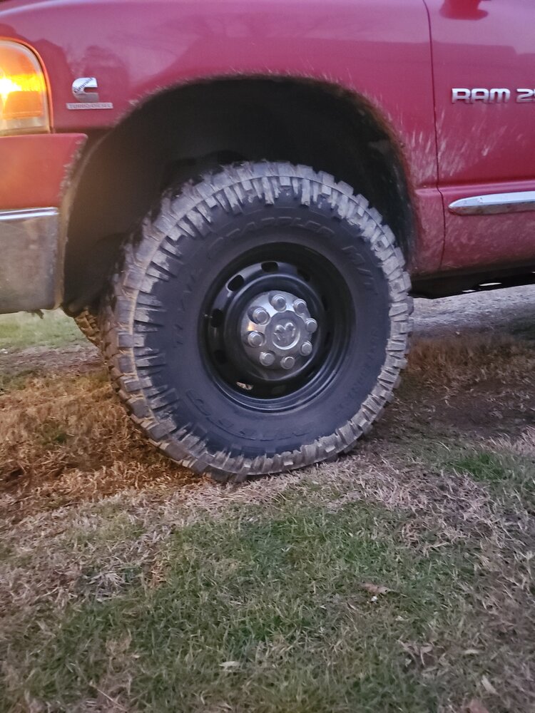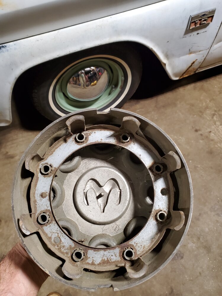 Sanny Claws snagged me a set of mirrors when he was in China.....got them put on this evening. Mounted up a set a tires I picked up from @Jason W. awhile back on some stock steel wheels a couple nights ago. I was hoping to run some '70s Era redline Dodge dogdish hubcaps I dug out of my father-in-law shed but only found 3 of them. I've only got 3 of the stock center caps as well but should be cheaper and easier to find for now.