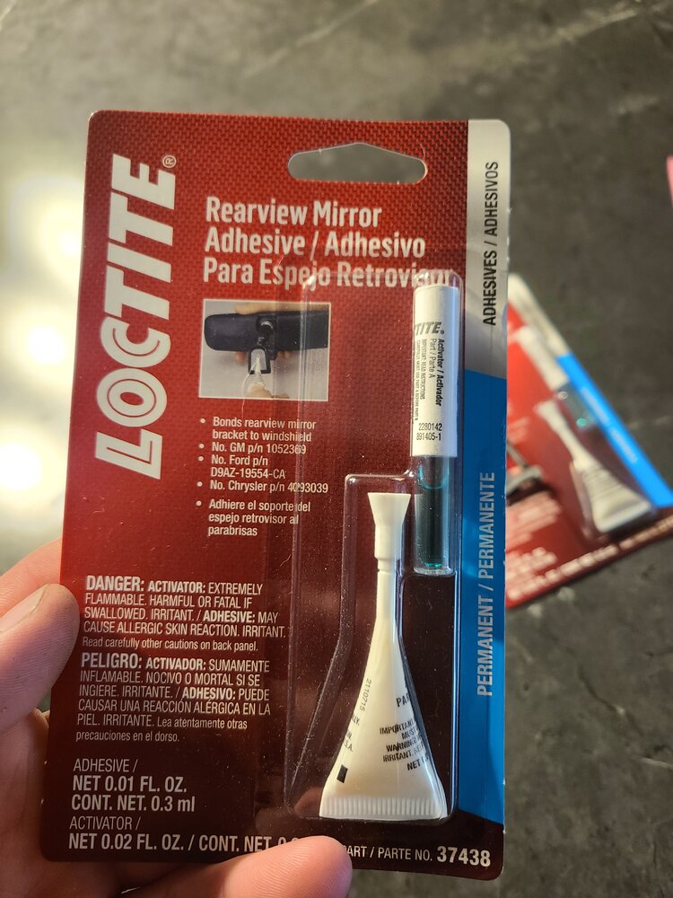 I had already done the headlights in the S10, but I got new tail lights and bulbs for it. Also changed a lower turn signal bulb out that, apparently, wasn't making contact and wouldn't let it flash. Then put the new headlight housings/LED bulbs in the CUCV and reinstalled the rear view mirrors in both trucks. I'm hoping this Loctite adhesive works better than the crappy Permatex kits you get at the parts stores! At least the adhesive looks like a nice, heavy duty epoxy and not super glue. It also has GM, Ford, and Mopar part numbers right on the front of the packaging. That makes me feel a little better about it.