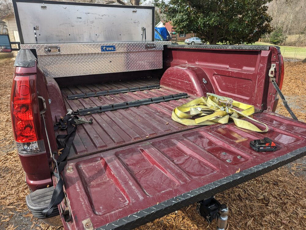 Also cleaned out and removed the crappy plastic bed liner from the bed I picked up to replace the bondo filled box on the crew; and I'd spoken with the seller about the flip plate in it, there wasn't any rails on the truck so we were stumped as to how they pulled with it.