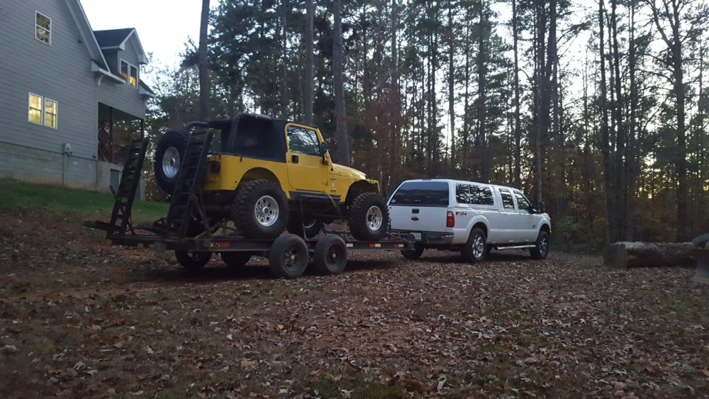 Get some air bags already! Did the Jeep move under its own power or did you have to winch it onto the trailer? Is it really going to be put in 4wd and drive over a rock bigger than the average curb?
