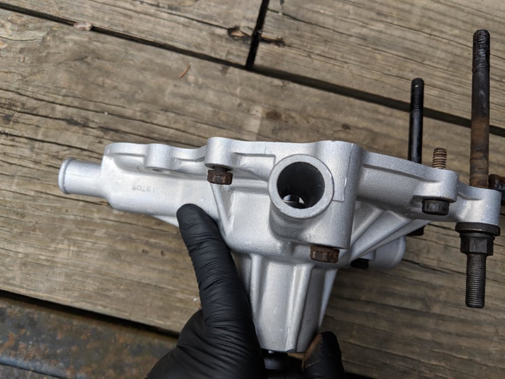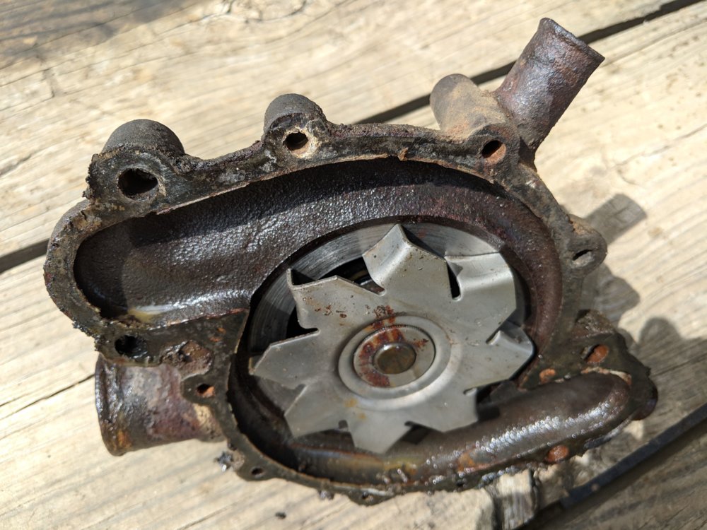 Tore into the Jeep today. I've been running hot even with my brand new radiator. I decided it was time to swap out the old with some new. The water pump has been in there since 1975. I've got money out of it.