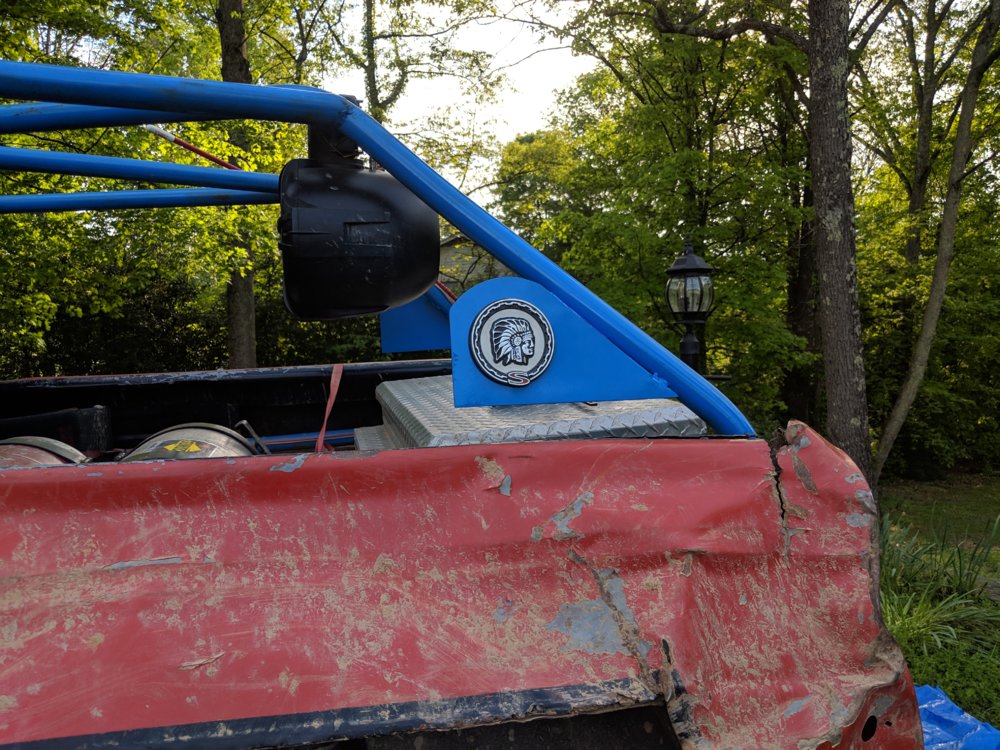 I installed a new heim on my double ended steering set up where the insert shit out. Rotated the passenger tires and retightened the wheel spacers on the rear. I then welded on the rear bumper that got ripped off last time out. Cut and shortened the passenger slider where my tire was hitting it. Welded on some decorative pieces I cut out last week. Don't judge me. Hopefully, you'll be able to tell it's a Cherokee now. I've always wanted to put the indian emblems back on but just got busy with other necessary stuff. Welded a rear support for the back off the Jeep where the truck box is. Touched up the paint in a couple spots on the cage where it was rusting.