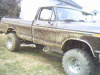 OK, Your average lifted Jeep with 33's. It's normally a weekend vehicle (I only put around 4k a year on it, and stays in the garage). But just to prove it get wheel occasionally, I put a muddy pic in there. Gotta Lock-Right in the front and has been re-geared to 4.11's. K&N Air Raid, Gibson CatBack, lights, bumpers, nerf bars, etc. My favorite goodies are the Dixie horn, both hard and soft tops and my CB Radio.....
