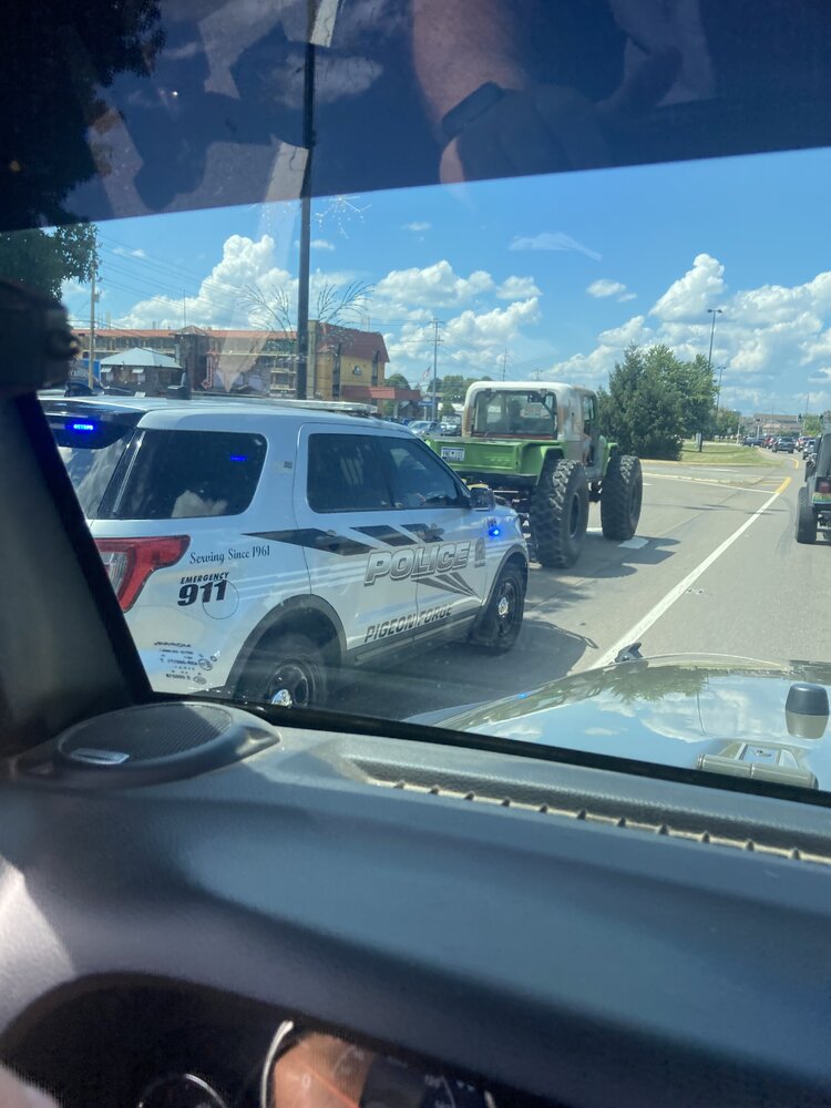 Saw this at the Jeep invasion. Appears the police were not amused as he was stopped by two of them